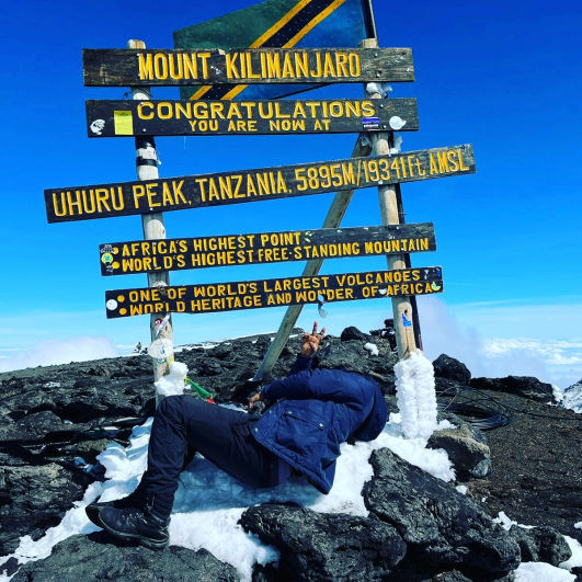 Mount Kilimanjaro is a dormant volcano located in Kilimanjaro Region of Tanzania. It has three volcanic cones: Kibo, Mawenzi, and Shira. It is the highest mountain in Africa and the highest single free-standing mountain above sea level in the world: 5,895 m above sea level and about 4,900 m above its plateau base.